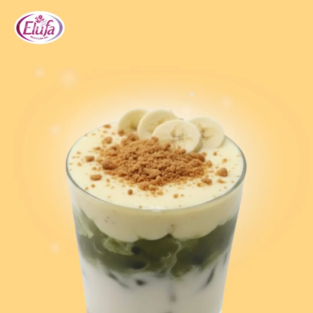 Smooth, creamy, and café-perfect — this drink layers the rich flavor of Elufa Matcha Powder with silky banana pudding for a cozy, indulgent treat.