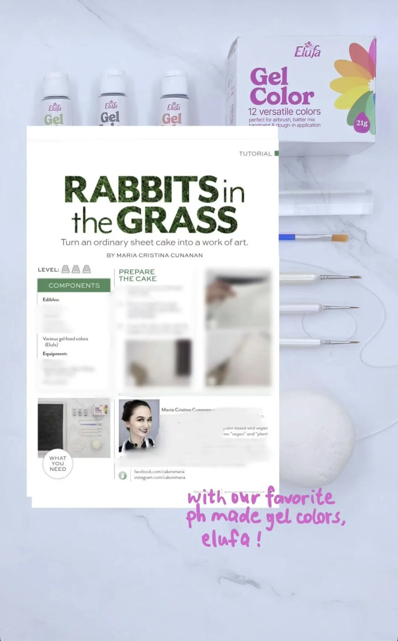 At Elufa Multi-Link Inc., supporting Filipino creativity goes beyond supplying quality ingredients—we aim to be a partner in every artist’s journey. Through our vibrant Gel Colors, we empower local bakers and edible artists to express their vision with precision and boldness. One remarkable example is @cakenimaria, whose edible masterpiece “Rabbits in the Grass” was featured in the March/April 2025 issue of American Cake Decorating Magazine (pages 38–41).